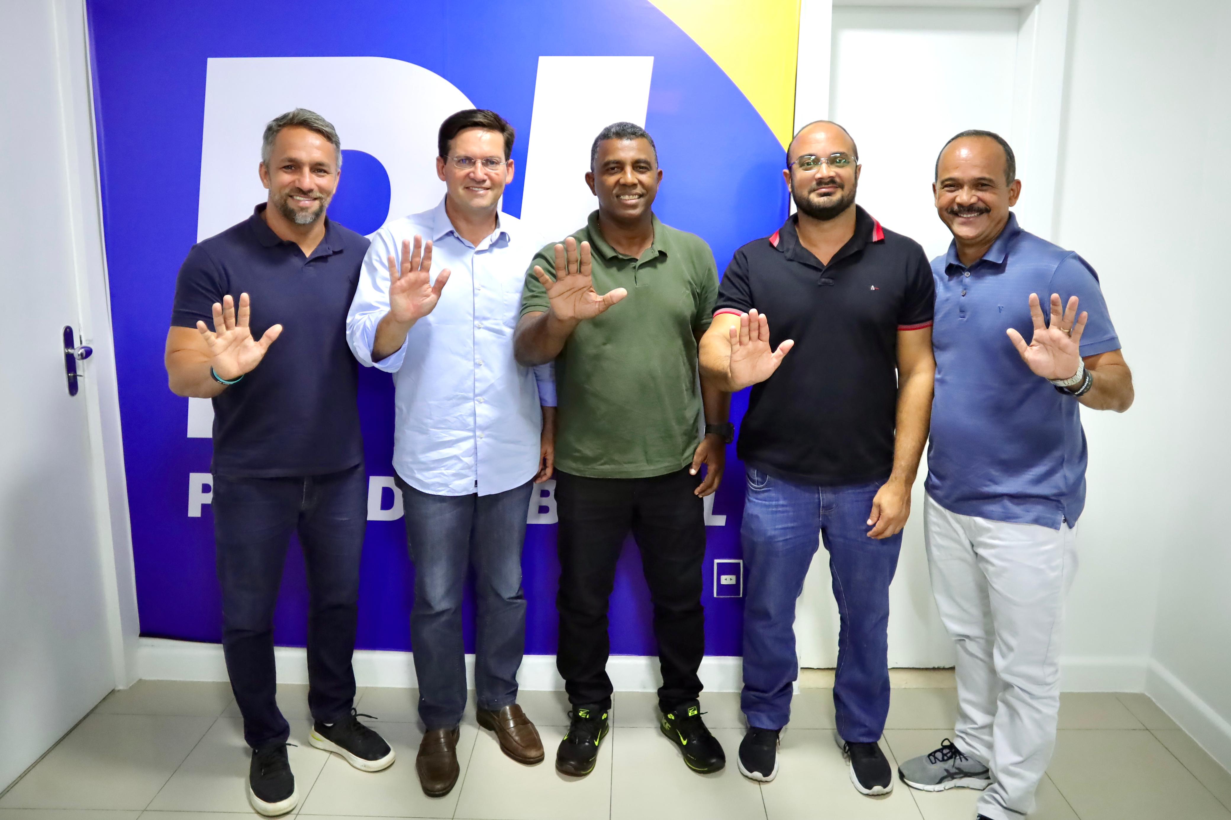 A reunião contou também com as presenças do vereador e presidente da Câmara de Camaçari, Flávio Matos; do presidente estadual do PL, João Roma; e dos deputados estaduais Diego Castro e Capitão Alden.