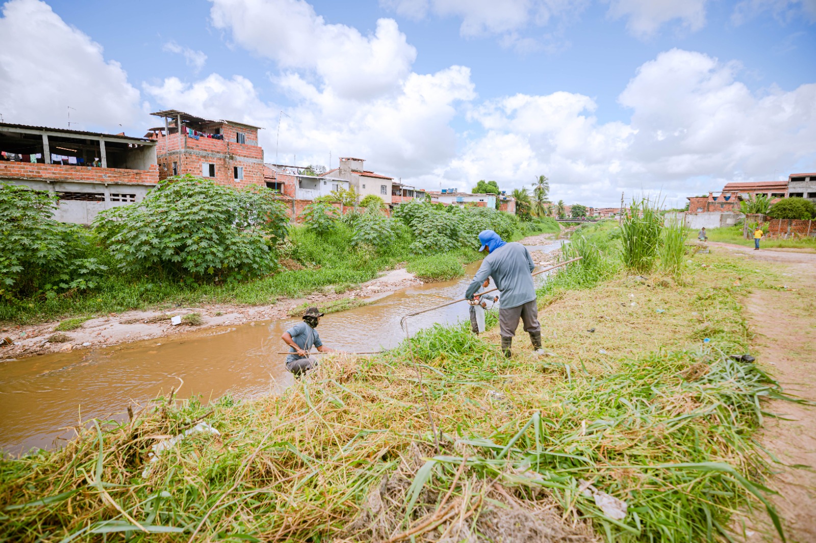 Na sede da cidade, a iniciativa concentra-se no bairro Jardim Brasília, onde equipes realizam a limpeza manual dos canais, removendo vegetação, lixo e outros detritos que possam comprometer o escoamento adequado das águas.